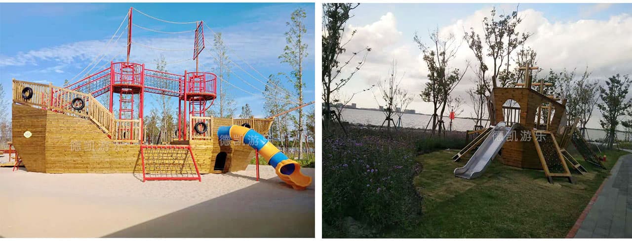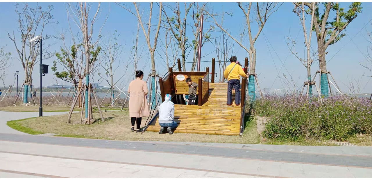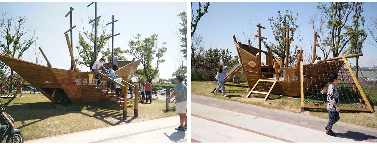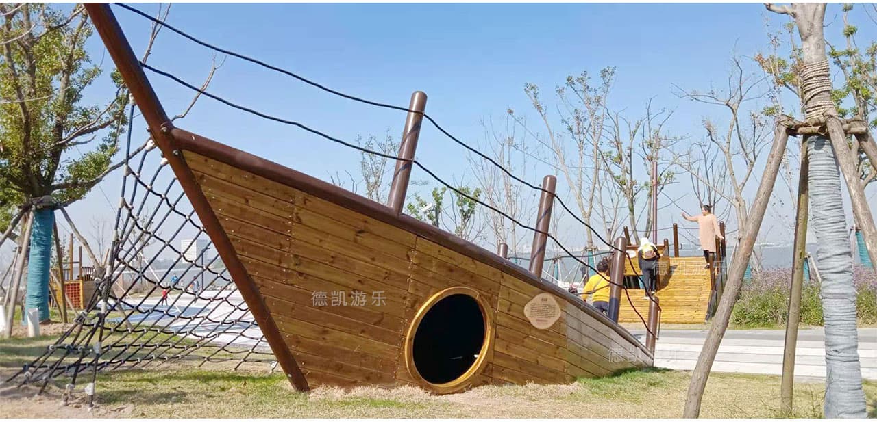 有艘可以攀爬玩耍的“擱淺”海盜船