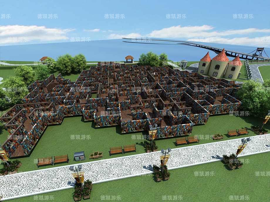 迷宮,指的是充滿復雜通道,很難找到從其內部到達入口或從入口到達中心的道路,道路復雜難辨,人進去不容易出來的建筑物。在世界的不同文化發展時期,這些建筑物始終吸引人們沿著彎彎曲曲、困難重重的小路吃力地行走,尋找真相。在迷宮里面是沒有技巧可言的,只有靠孩子們自己慢慢探索。