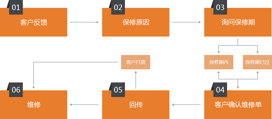 (1)跟客戶確認好維修單后(保修期內),將盡快安排維修